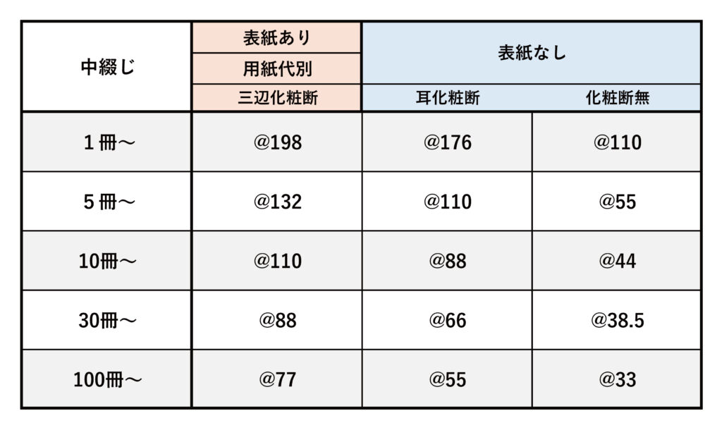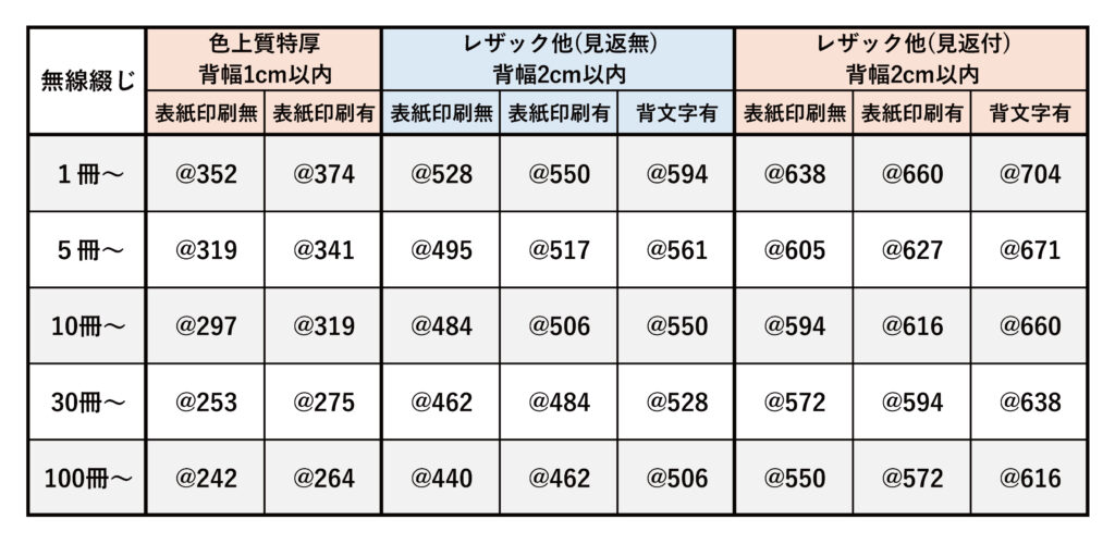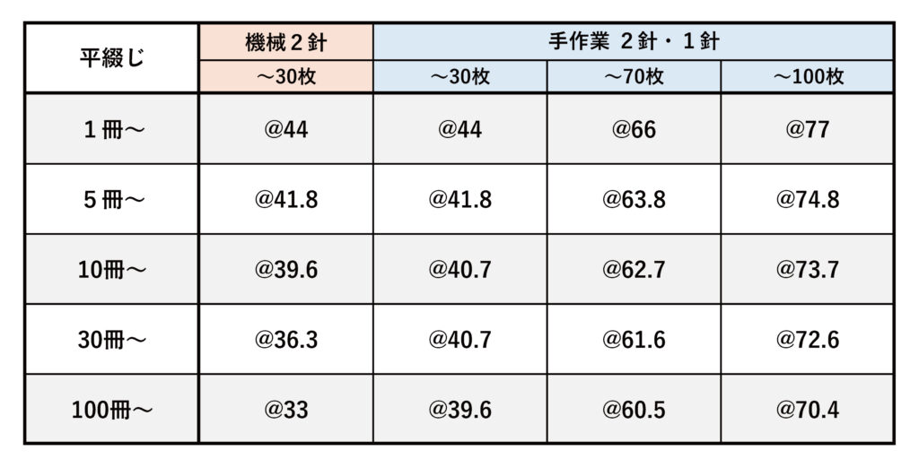 綴じ方の種類と特徴 2025.11.1時点の料金